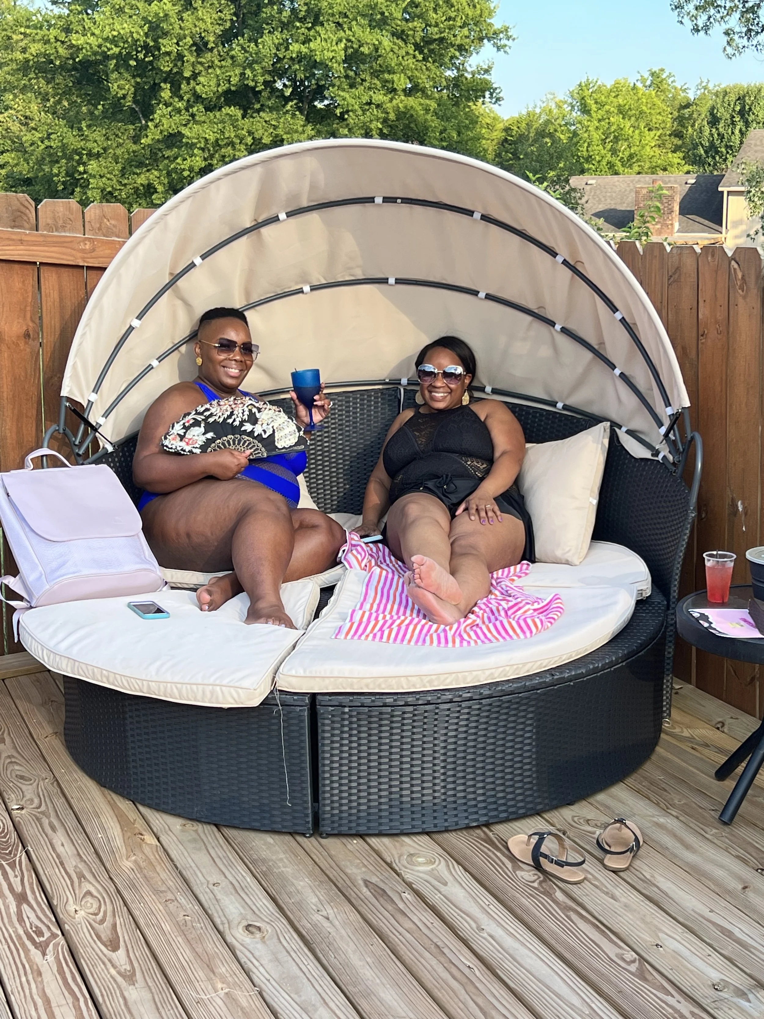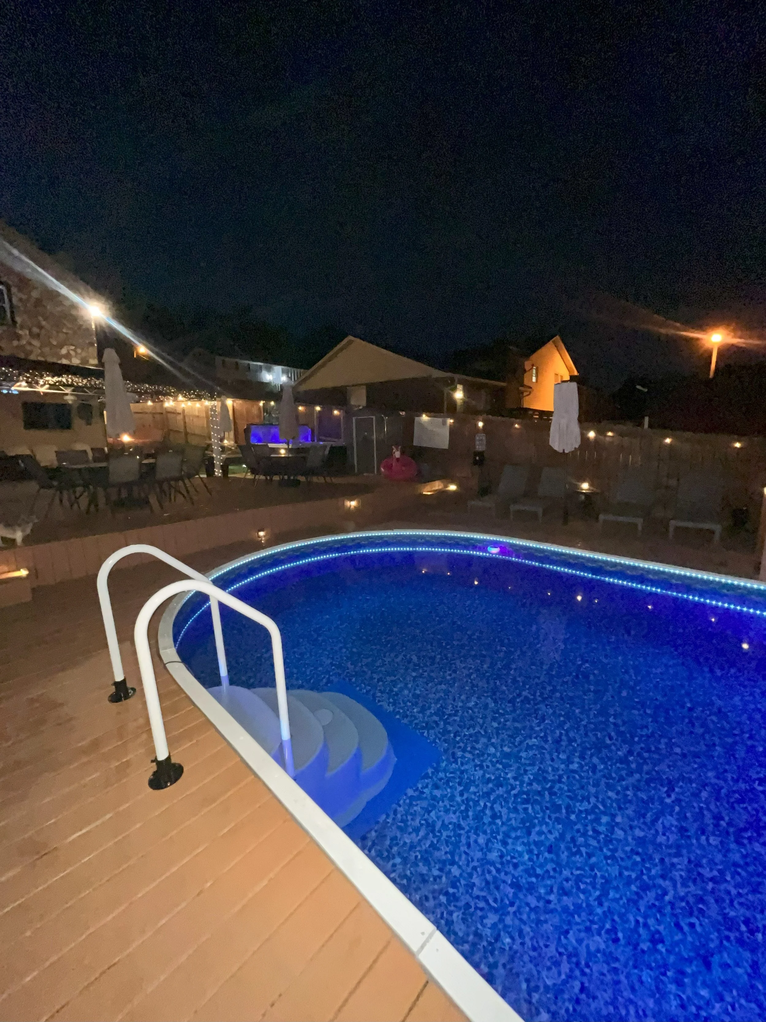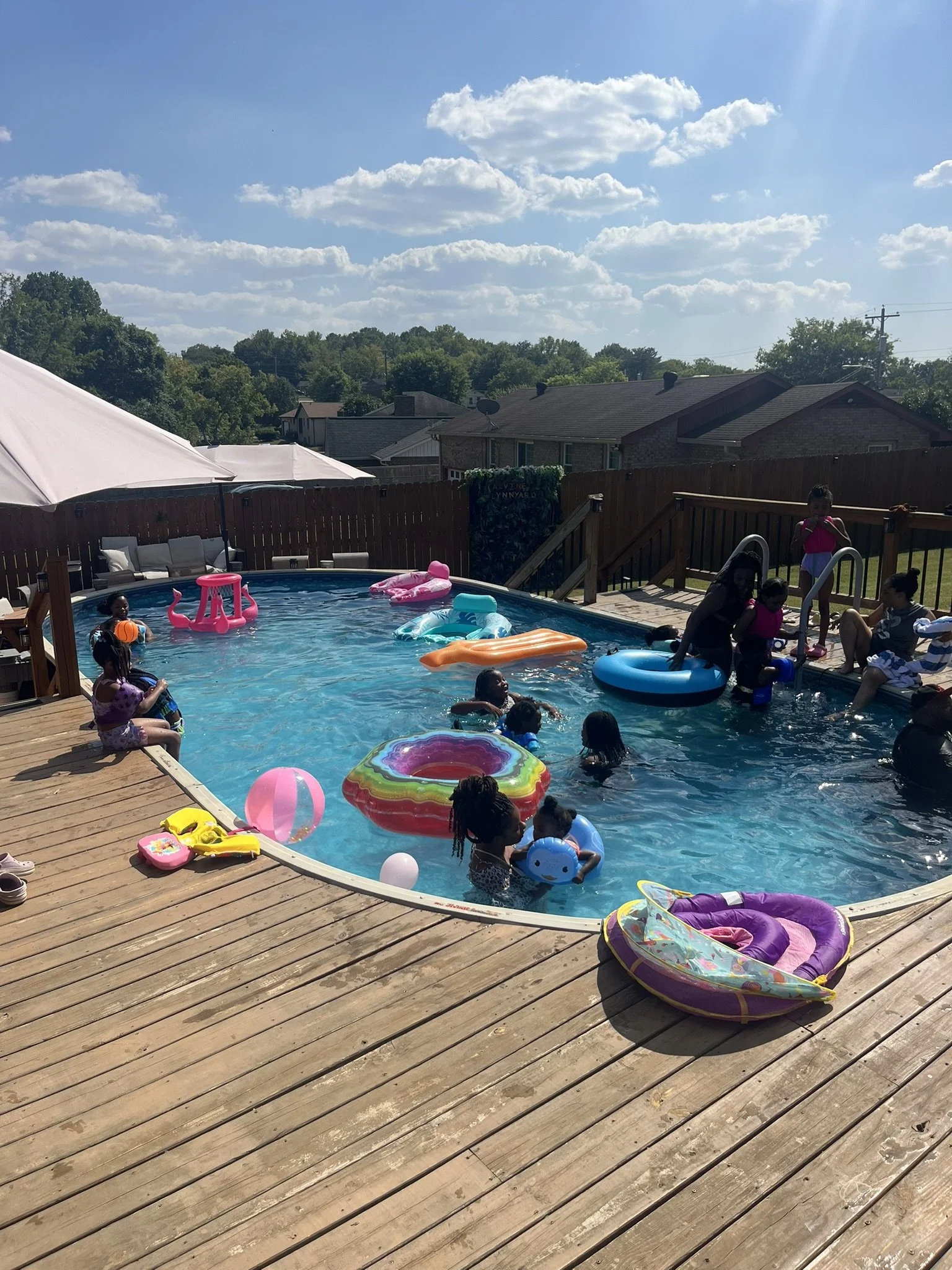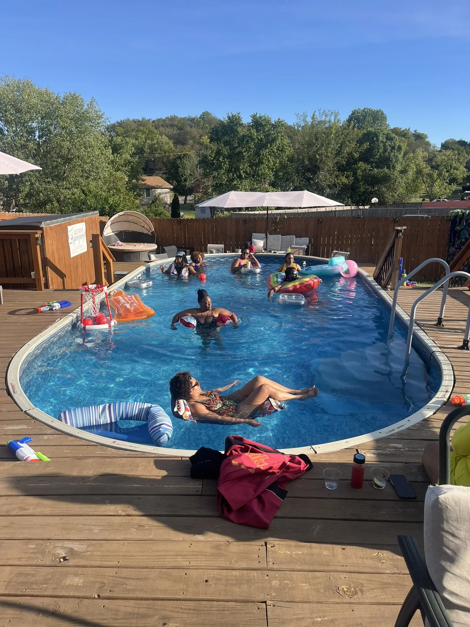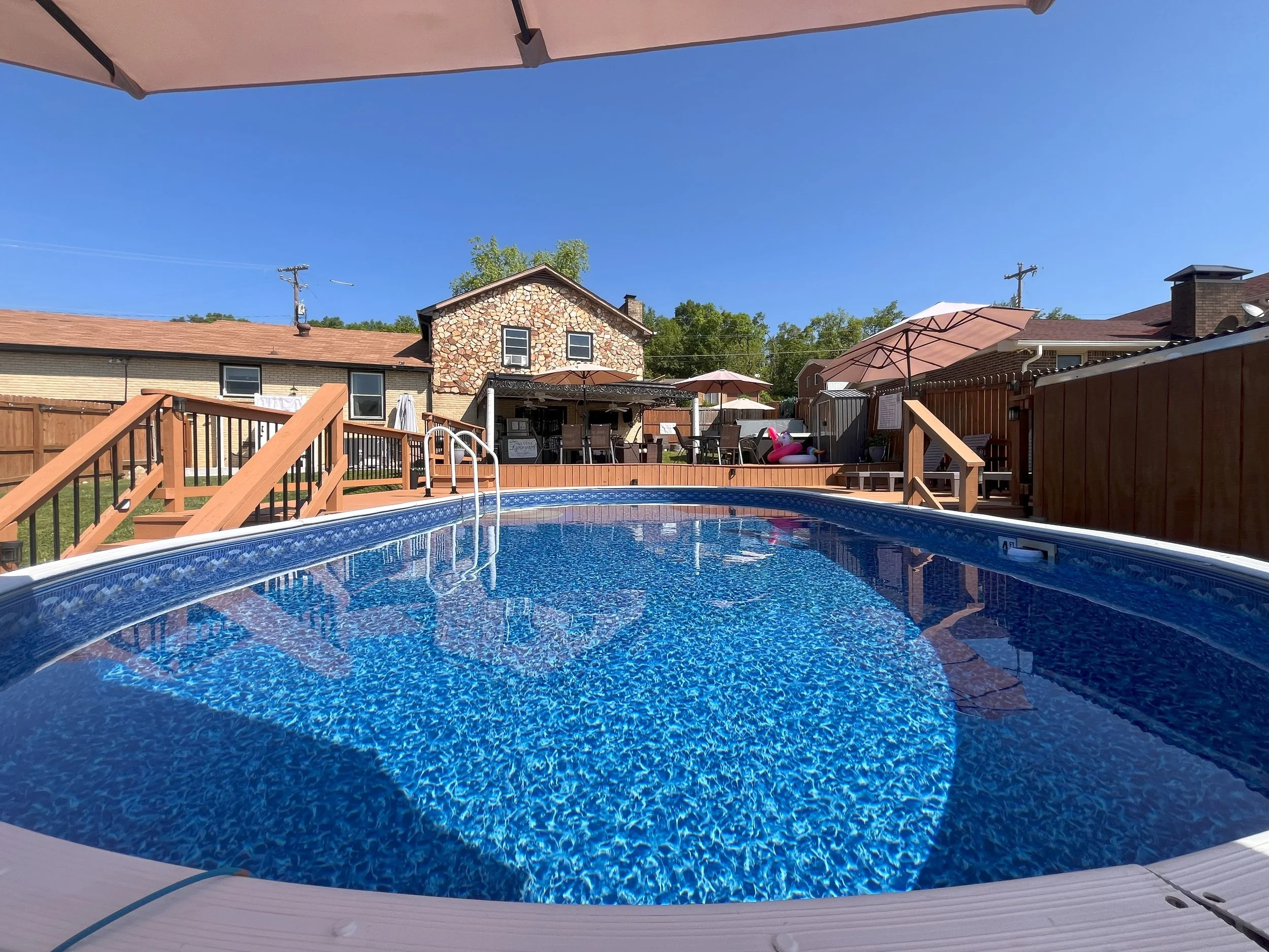 “Really perfect pool experience. The space has everything you need, tons of floats and toys, a nice covered patio, and an outdoor fridge and table space. Very comfortable and fun space.”