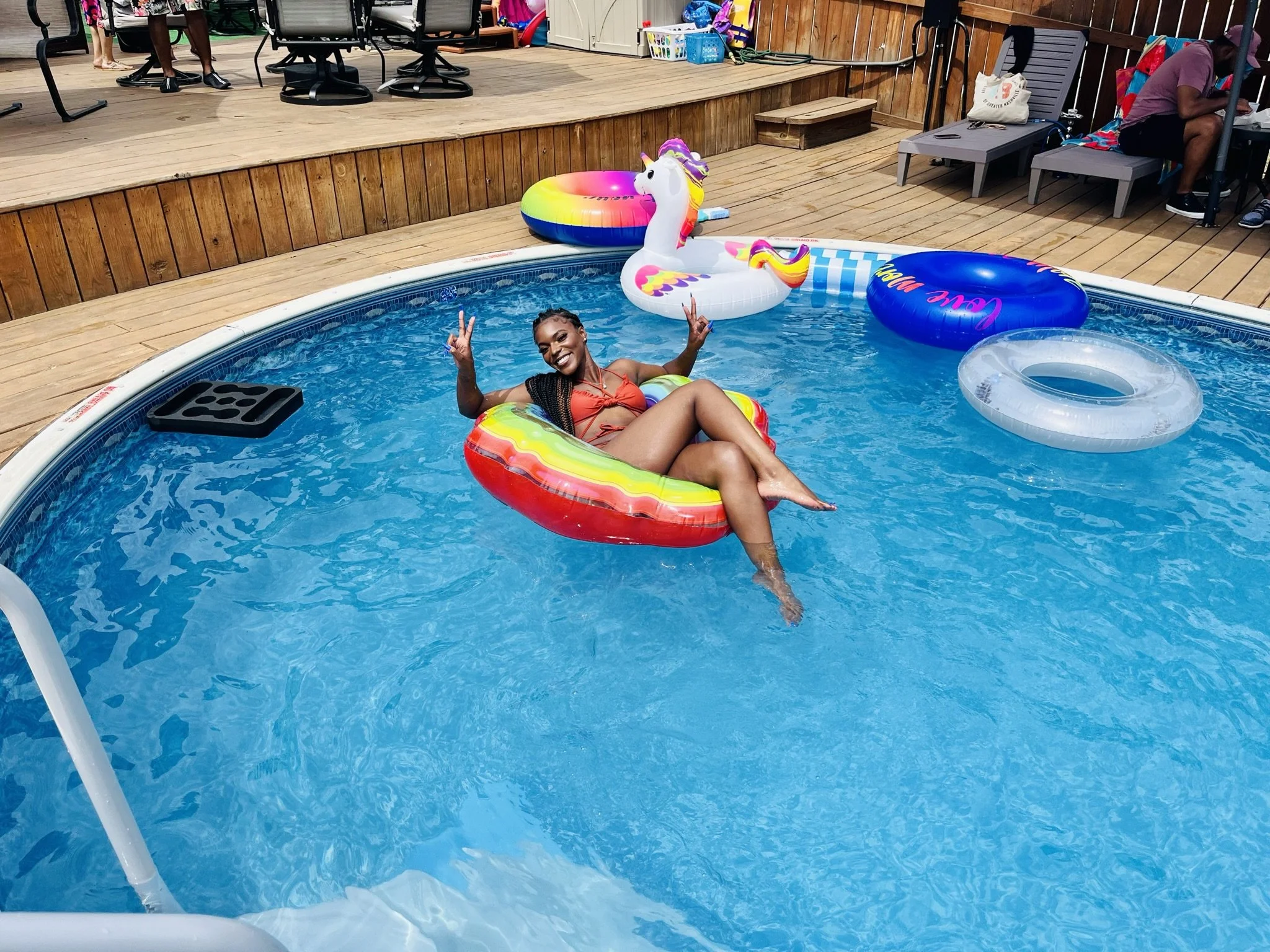 “Great pool for a dip on a hot day! Nice variety of pool toys/floats available to use. The swim up bar was awesome.”