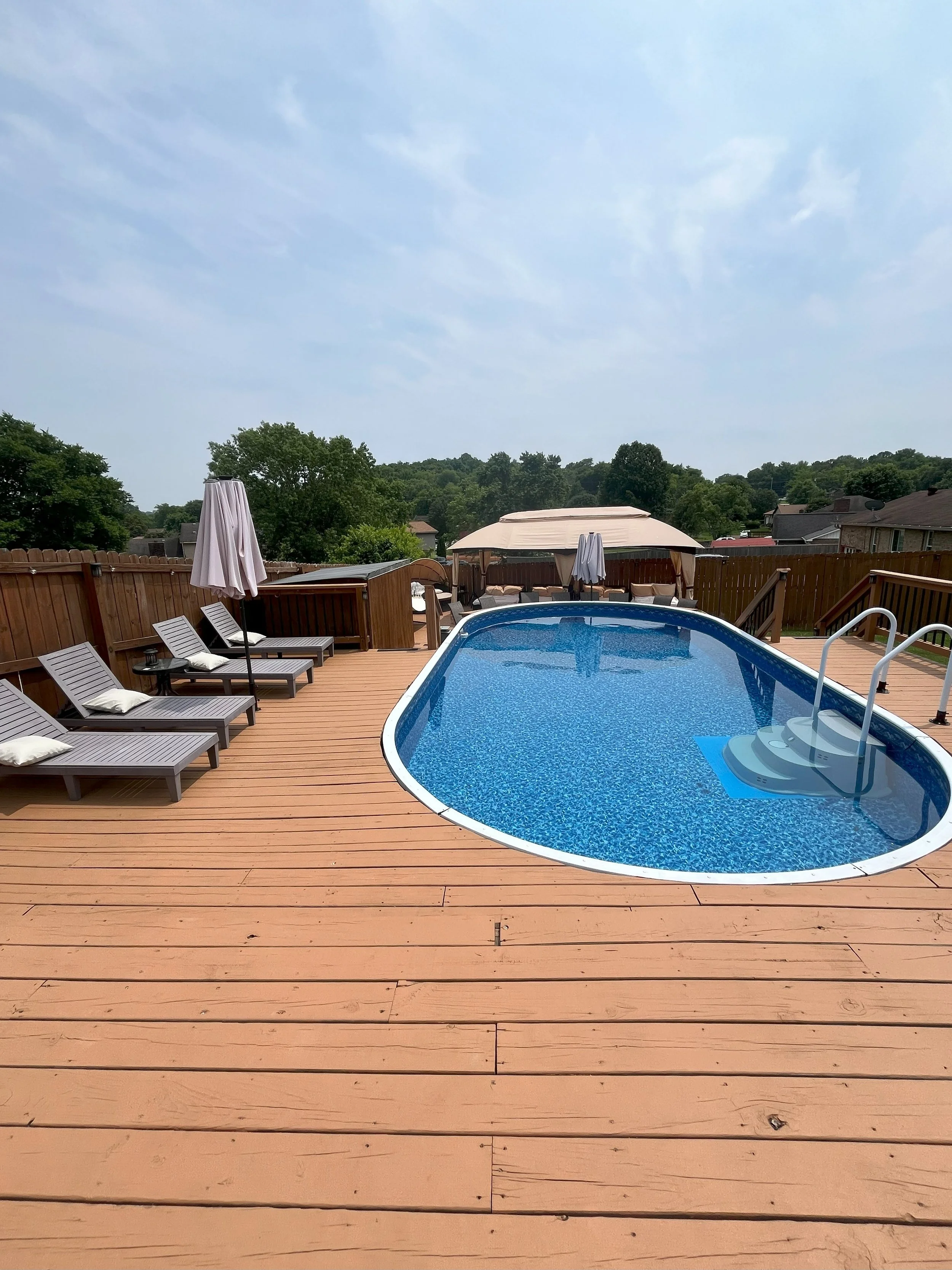 Heated Pool 〰️ Hot Tub 〰️ Swim Up Bar 〰️ Large Deck 〰️ Covered Patio 〰️ Tables/Umbrellas/Chairs 〰️ Pool Chaise Loungers 〰️ Canopy Lounger 〰️ Refrigerator 〰️ Microwave 〰️ Charcoal Grill 〰️ Propane Heaters 〰️ Pool Toys/Board Games 〰️ Wi-Fi 〰️ Restroom 〰️